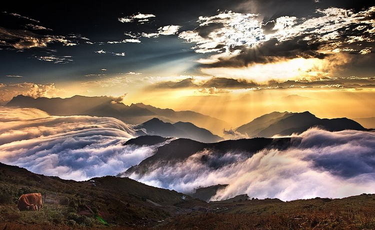 简单的休息后,我们开始了从街心花园到云海人家的艰难前进,这个时候已经是下午2点了。到达云海人家,已经4点了,而且天上乌云密布,开始下雨了,我默默的边走边祈祷,不求看到美丽的风景,只求不要下雨就好,看着墙上写的距离牛背山还有4.9公里的牌子时,我预感到,10个小时是避免不了的了。